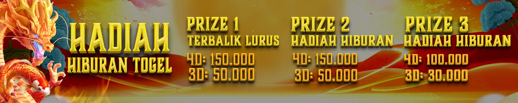 - Hadiah prize 3 : 4D = Rp. 100.000,- / 3D = Rp. 30.000,-